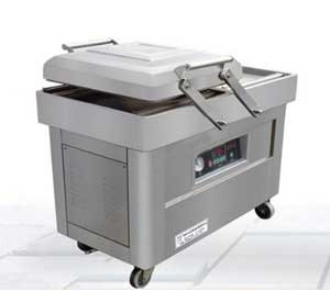 食品真空包裝機將食品裝入包裝袋,抽出包裝袋內(nèi)的空氣,達(dá)到預(yù)定真空度后,完成封口工序。